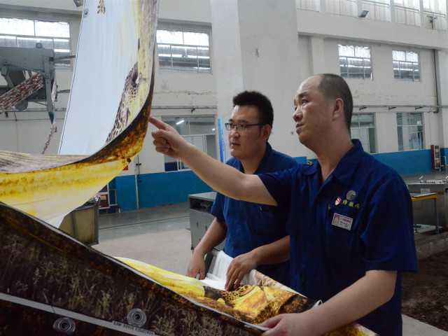 在公司科技產(chǎn)業(yè)園花布平網(wǎng)印制車(chē)間,化料、調(diào)漿、安裝刮刀……孫維生正忙著和同事們進(jìn)行開(kāi)車(chē)前的準(zhǔn)備工作。經(jīng)過(guò)前期安裝和調(diào)試,公司進(jìn)口的兩臺(tái)平網(wǎng)印花機(jī)及相關(guān)配套系統(tǒng)已達(dá)到批量生產(chǎn)的要求和能力。看著用平網(wǎng)印花機(jī)生產(chǎn)出來(lái)的花布產(chǎn)品,大家在心里為公司未來(lái)的發(fā)展更加充滿(mǎn)了信心。