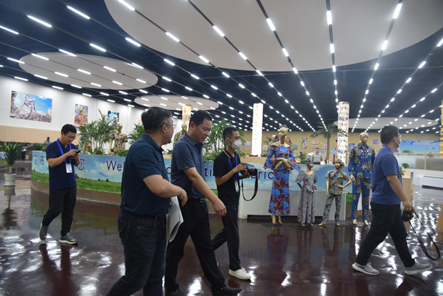 采訪團一行參觀了公司面料分公司、花布分公司、家紡分公司、創意設計中心、工程技術研究院、智云中心和花布車間等區域,認真聽取了公司在智能制造、綠色發展方面實施的深度改造。采訪團對公司2020年以來實施的“退城進園”暨“智能綠色工廠建設項目”所帶來的整體躍升,表現出特別的興趣,并在現場對5G工業園區,產品設計制造、市場分析和管理決策智能化,節能減排新成效以及企業品牌運營與建設等內容,進行了深度采訪與交流。