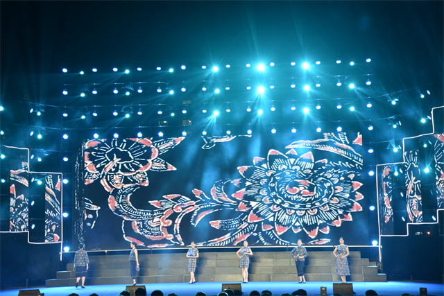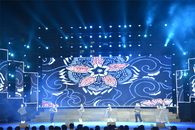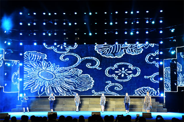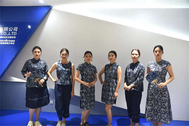此次文藝匯演中,公司參演人員盡著由公司設計生產的服裝產品。藍印花布系列服飾以藍白分明、清新明質、純真素樸、典雅大方的藝術特點體現了濱州大地濃厚的文化底蘊。