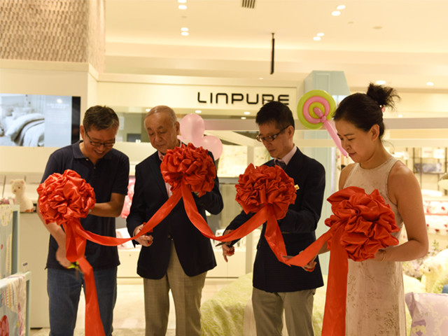 7月23日,華紡上海英儂公司Linpure藍(lán)鉑品牌成功入駐上海高級(jí)商場(chǎng)大丸百貨,華特迪士尼有限公司品牌高級(jí)經(jīng)理Zinia.Ling女士,上海大丸百貨店長(zhǎng)原田隆晴先生、部長(zhǎng)柴田真先生蒞臨現(xiàn)場(chǎng)參觀祝賀,并與華紡Linpure藍(lán)鉑品牌總經(jīng)理高鵬一同為開(kāi)業(yè)剪彩。
