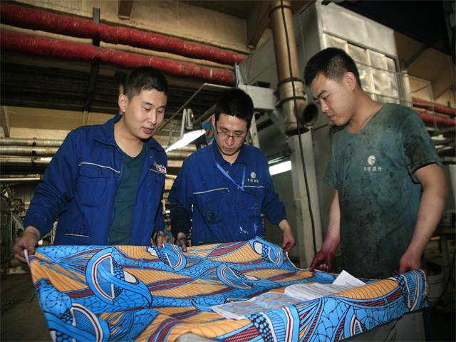 3月17日,花一車間南印制甲班班長吳樂、印花機機長李彬彬和副機長牟石磊,圍繞當班印制產品的質量展開改進分析,力求使本班產品印制提升到一個更好的水平。花一車間、花二車間所生產的產品,絕大比重為出口國外市場,在非洲等傳統市場占有重要的市場份額和良好的市場信譽,靠的即是穩定而過硬的產品質量。花一車間、花二車間堅持“產品為王、質量制勝”的思想,使員工的質量意識得到持續增強。他們普遍認識到,質量是一個旅程,永遠沒有終點。