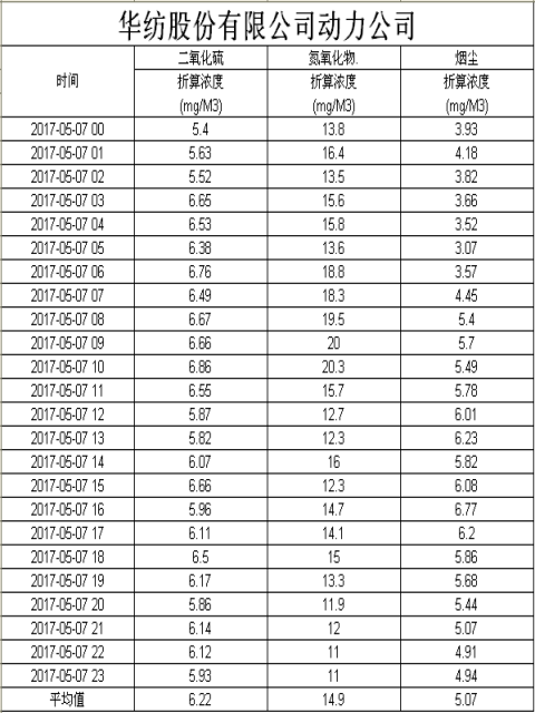 煙氣排放數據信息公開2017.5.7數據