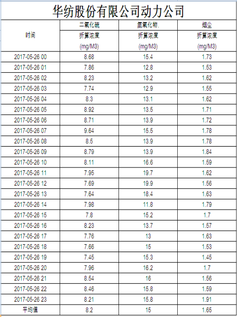 煙氣排放數(shù)據(jù)信息公開2017.5.26數(shù)據(jù)
