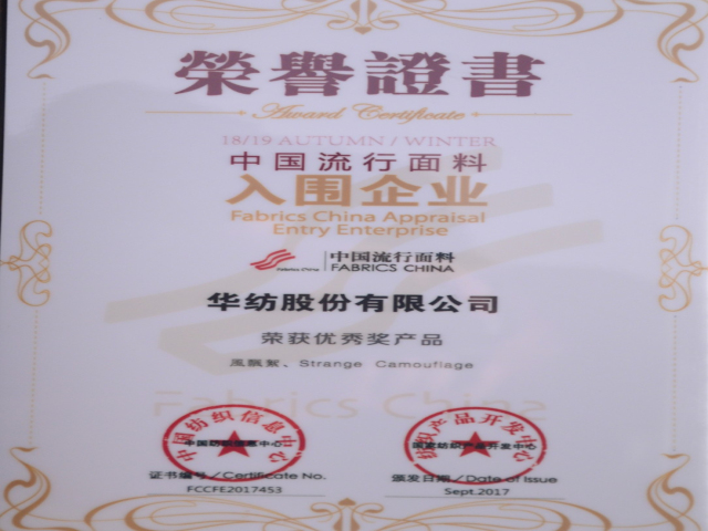 公司一直以來注重產品設計、研發與創新,建立起以市場需求為導向的產品開發體系;再度入圍流行面料企業,彰顯了公司在紡織產品開發能力的進一步提升。