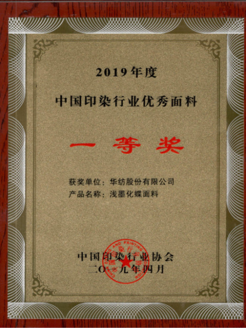 在剛剛結(jié)束的由中國印染行業(yè)協(xié)會舉辦的2019年度“中國印染行業(yè)優(yōu)秀面料”評選活動中,公司3套作品從參評的384個產(chǎn)品中脫穎而出,獲得表彰。其中,淺墨化蝶面料產(chǎn)品獲得一等獎,鳳尾花面料和幻影面料獲得二等獎,這也是公司面料產(chǎn)品再一次獲得行業(yè)表彰和認可。